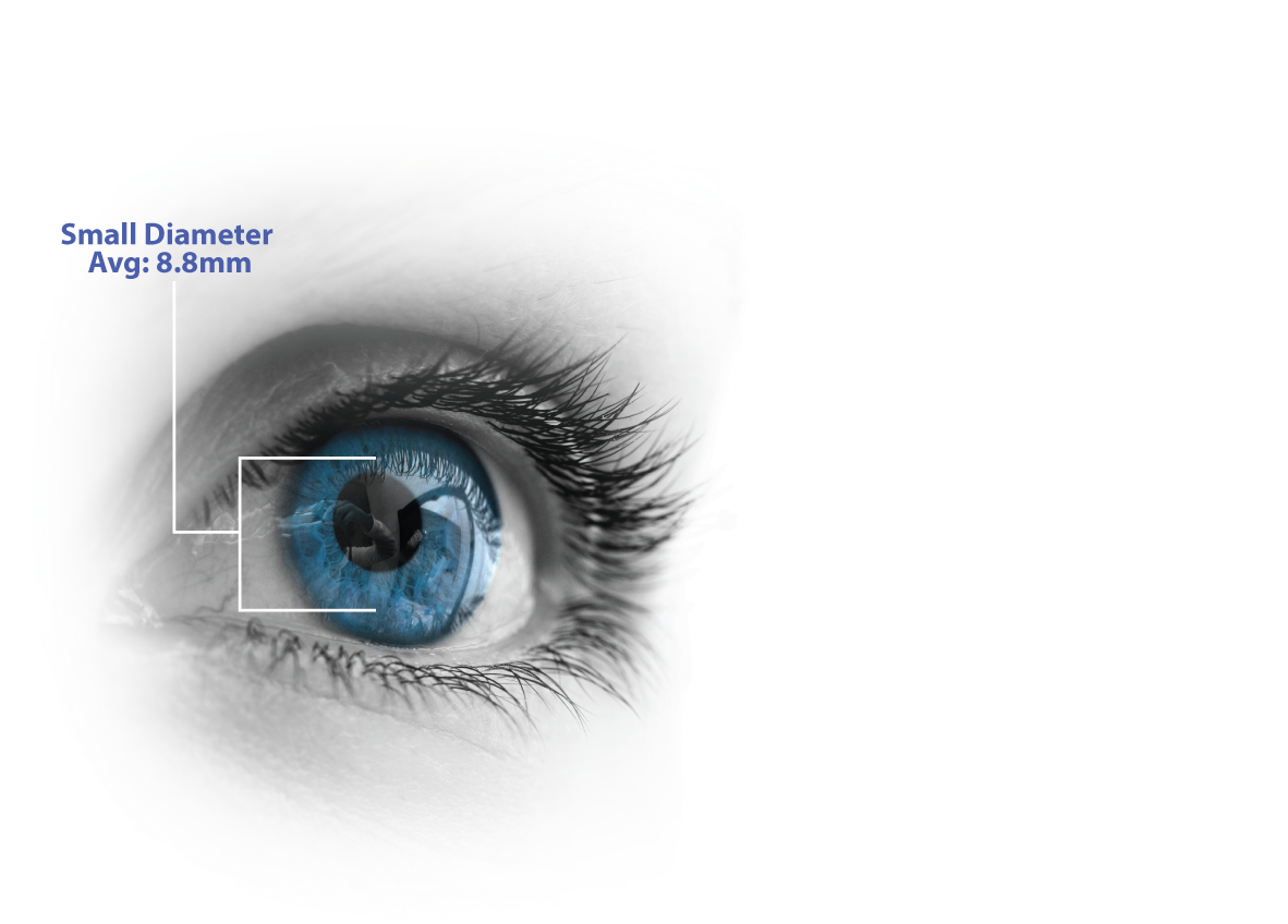 The smaller diameter and smaller optic zone allows the lens to center over more severe corneas, thus creating a more uniform and comfortable fit.